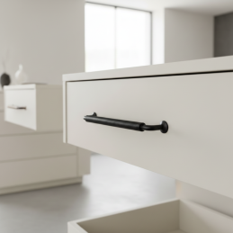 Úchytka STIGMA v čiernom matnom prevedení je ideálnou voľbou pre zákazníkov, ktorí hľadajú kvalitný, dizajnovo výrazný a funkčný detail pre moderný nábytok.