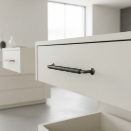 Dizajnová nábytková úchytka STIGMA v prevedení staročierna zaujme autentickým industriálnym vzhľadom a výrazným vrúbkovaným úchopom. Patinovaný staročierny povrch dodáva úchytke charakter a vintage nádych, vďaka čomu sa skvele hodí do loftových, industriálnych aj rustikálnych interiérov.