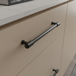 Nábytková úchytka TINA v modernom prevedení čierna matná je elegantným a nadčasovým doplnkom, ktorý zvýrazní čisté línie moderného nábytku. Vďaka jednoduchému valcovému tvaru sa výborne hodí do minimalistických, industriálnych aj moderných interiérov.