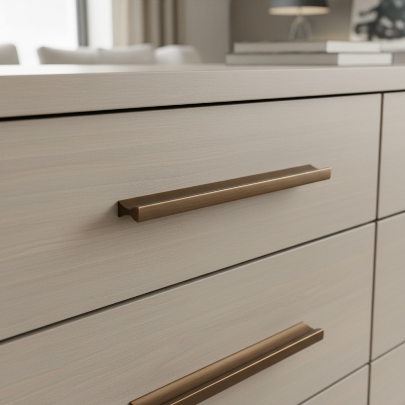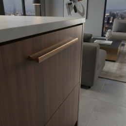 Úchytka PIREA v prevedení mosadz brúsená je dizajnový doplnok, ktorý dodá nábytku luxusný a štíhly moderný vzhľad. Jej minimalistická línia s jemným ergonomickým vyfrézovaním pôsobí elegantne, čistým dojmom a prirodzene zapadne do moderných interiérov, high-end kuchýň či dizajnového nábytku.
