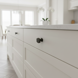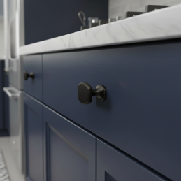 Knopka AMADORA v čiernej matnej úprave je moderným a výrazným dizajnovým doplnkom, ktorý perfektne dopĺňa veľké úchytky AMADORA. Spoločne vytvárajú jednotnú, elegantnú a minimalistickú líniu, ktorá sa hodí do moderných kuchýň, kúpeľní, šatníkov aj obývacích priestorov.
