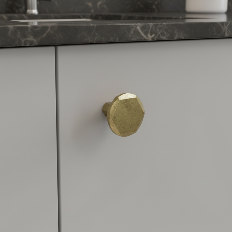 Knopka LAMEGO v staromosadznom prevedení je elegantným a štýlovým detailom, ktorý dokonale dopĺňa veľké úchytky LAMEGO v rovnakom dizajne. Jej jemne fazetovaný tvar pôsobí luxusne a zároveň nadčasovo, vďaka čomu sa hodí do klasických, vintage aj moderných interiérov.