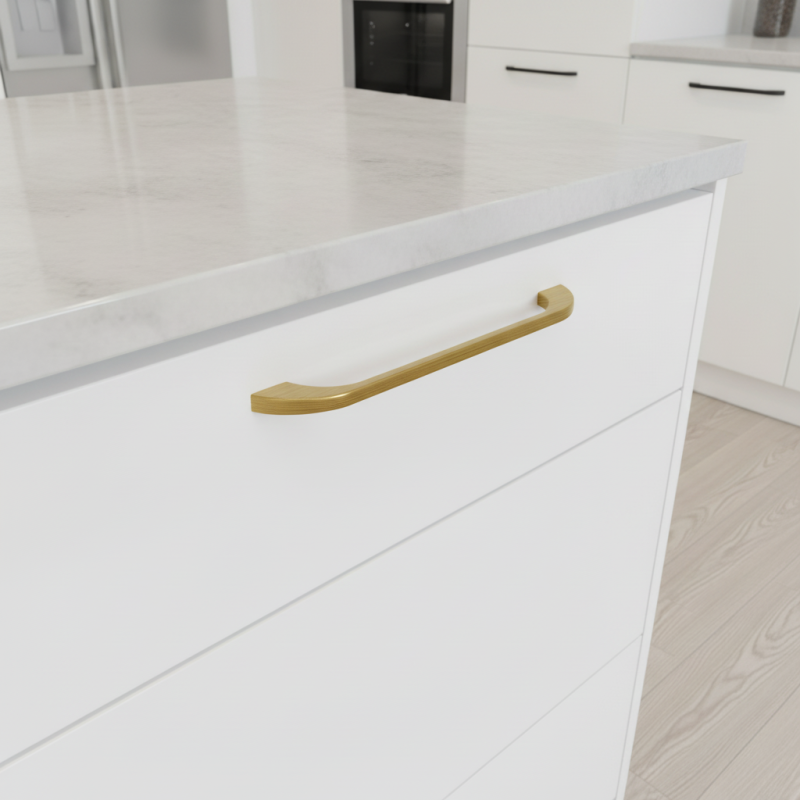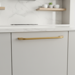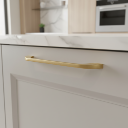 Úchytka DARA v zlatej brúsenej farbe je ideálnou voľbou pre tých, ktorí chcú svojmu nábytku dodať elegantný, moderný a jemne luxusný detail bez prehnanej okázalosti.