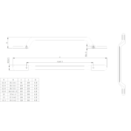 Rozteč 128 mm – celková dĺžka 194 mm, šírka 12,6 mm, výška 26,5 ±1 mm