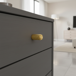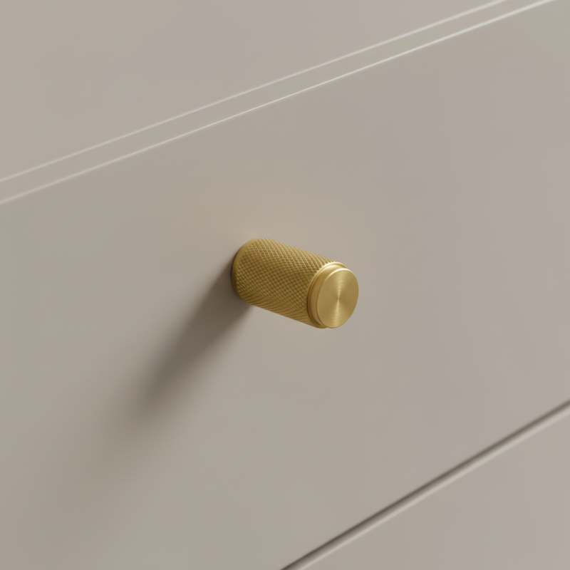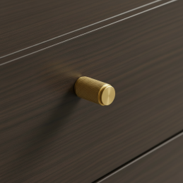 Knopka LAYLA v brúsenom zlatom prevedení je elegantným a zároveň moderným detailom, ktorý dodá nábytku luxusný akcent bez pôsobenia okázalo. Jemne ryhovaný (knurled) povrch podčiarkuje precízne spracovanie, zlepšuje úchop a vytvára zaujímavú hru svetla na matne brúsenom zlatom povrchu.