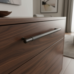 Úchytka LAYLA v čiernom grafite je ideálnou voľbou pre tých, ktorí hľadajú moderný, funkčný a vizuálne výrazný detail s dôrazom na kvalitu, ergonómiu a industriálny dizajn. Výborne sa kombinuje aj s knopkou LAYLA v rovnakom prevedení pre jednotný vzhľad nábytku.