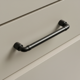 Úchytka je vyrobená z kvalitnej zliatiny, ktorá zaručuje vysokú pevnosť, odolnosť voči opotrebeniu a dlhú životnosť aj pri každodennom používaní. Matná čierna povrchová úprava pôsobí sofistikovane a zároveň je praktická na údržbu.