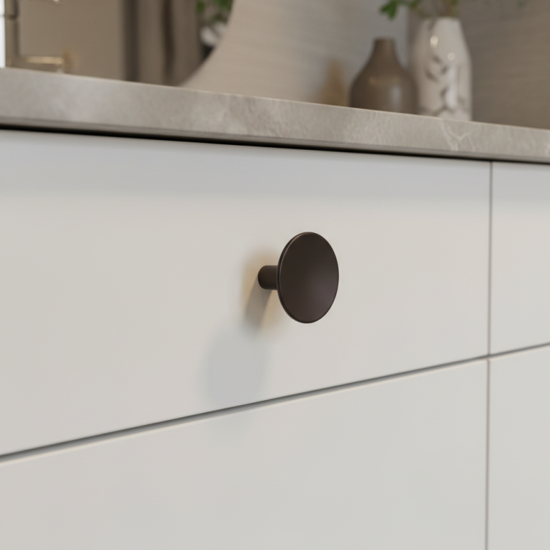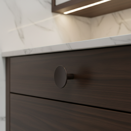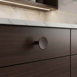 Elegantná nábytková knopka LILI v tmavohnedom prevedení predstavuje štýlový a nadčasový doplnok pre komody, zásuvky aj skrinky. Jej jemne zaoblený tvar a matný povrch pôsobia sofistikovane a prirodzene zapadnú do klasických aj moderných interiérov.