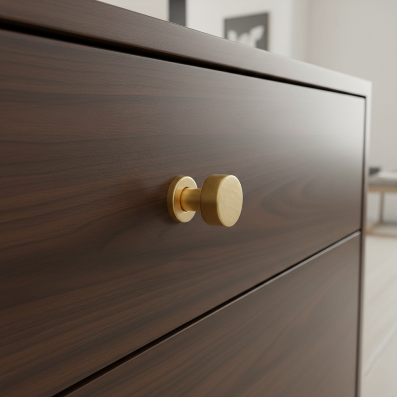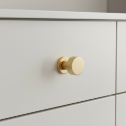 Elegantná nábytková knopka RIOX v prevedení zlatá brúsená je ideálnou voľbou pre moderné aj luxusne ladené interiéry. Minimalistický valcový tvar v kombinácii s jemne brúseným povrchom dodáva nábytku sofistikovaný a nadčasový vzhľad.