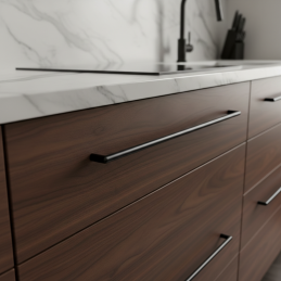 Matná čierna úprava eliminuje nežiaduce odlesky a znižuje viditeľnosť odtlačkov prstov, čo oceníte najmä pri každodennom používaní v kuchyni či kúpeľni. Úchytka sa výborne kombinuje s drevodekormi, bielymi aj tmavými povrchmi a vytvára štýlový kontrast v každom priestore.