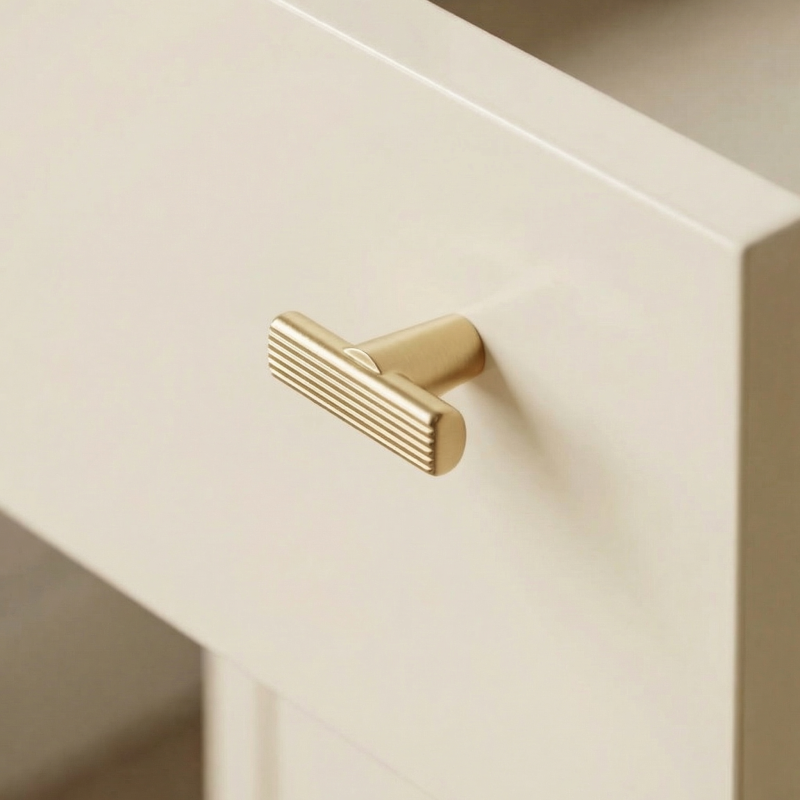 Elegantná nábytková úchytka LIZA v luxusnom brúsenom zlatom prevedení je štýlovým doplnkom pre kuchynské linky, skrinky, komody alebo šatníky. Minimalistický dizajn s jemným drážkovaním na vrchnej časti zabezpečuje nielen moderný vzhľad, ale aj pohodlné uchopenie.