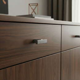 Moderná nábytková úchytka LIZA v elegantnom grafitovom prevedení je štýlovým doplnkom pre kuchynské linky, skrinky, komody alebo šatníky. Minimalistický dizajn s jemným drážkovaním na vrchnej časti zabezpečuje moderný vzhľad aj pohodlné uchopenie.