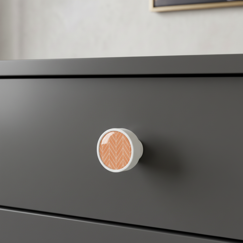 Drevená úchytka ARSIA v matnom bielom prevedení s motívom oranžovej jedle je hravým, moderným a sviežim doplnkom, ktorý prinesie do interiéru optimizmus a príjemnú farebnú energiu. Vďaka kombinácii masívneho bukového dreva, kvalitného bieleho laku a výrazného prírodného vzoru je táto úchytka ideálnym dekoratívnym prvkom pre štýlové a kreatívne interiéry.
