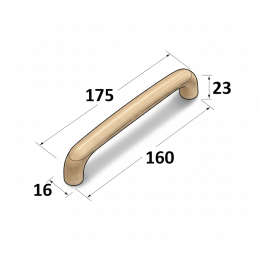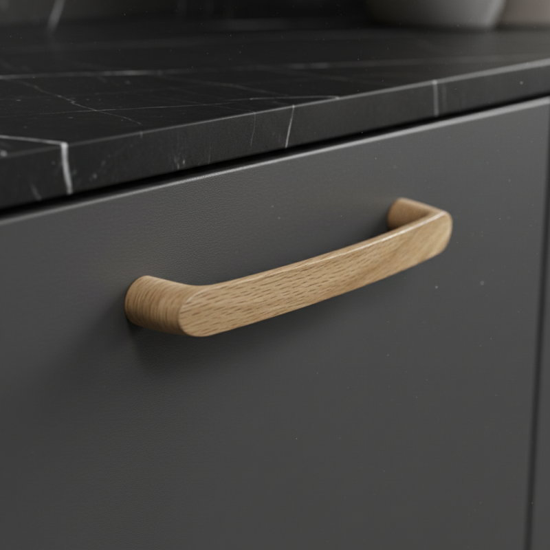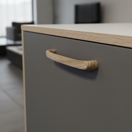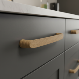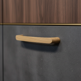 Krásna úchytka vyrobená z dubového dreva s prírodným lakom v celkovej dĺžke 175 mm