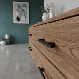 Moderná drevená úchytka LEO v prevedení dub čierny pôsobí elegantne, minimalisticky a perfektne doplní interiéry v štýle modern, industrial, loft alebo Scandinavian dark. Úchytka je vyrobená celá z masívneho dreva, precízne opracovaná a povrchovo matne lakovaná pre dlhú životnosť.