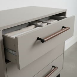Drevená úchytka SOHO v kombinácii lakovaného orecha a čiernych matných kovových detailov predstavuje moderný industriálny dizajn v tej najčistejšej podobe. Valcové telo z masívneho orechového dreva pôsobí elegantne a luxusne, pričom tmavé kovové koncovky a nožičky dodávajú úchytke charakter a výnimočný kontrast.