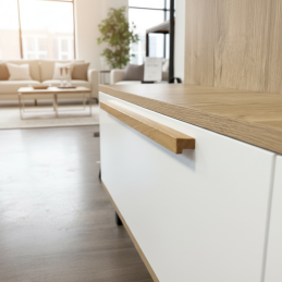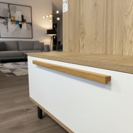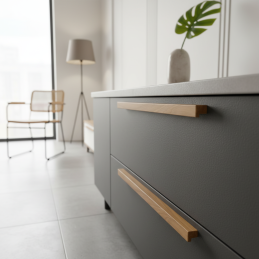 Drevená úchytka GILAN v prevedení dub lakovaný je moderným a elegantným riešením pre kuchynské linky, nábytok v obývačke, kúpeľni či predsieni. Minimalistický tvar s hranovým profilom pôsobí čisto a nadčasovo. Úchytka je vyrobená z kvalitného masívneho dubového dreva s odolnou lakovanou povrchovou úpravou, ktorá zabezpečuje dlhú životnosť a jednoduchú údržbu.