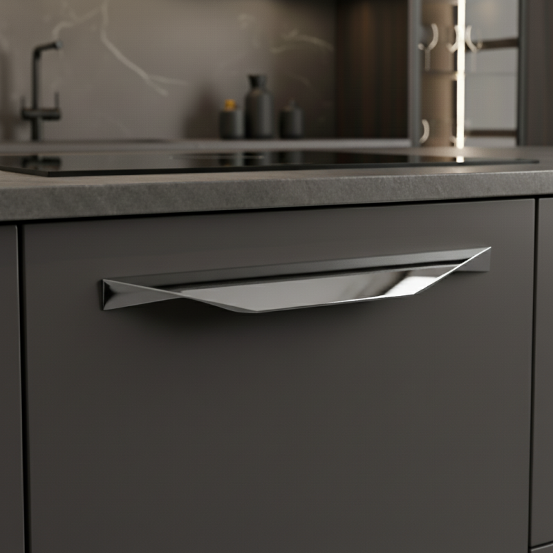 Úchytka VALENCIA v prevedení lesklý chróm prináša čistý, moderný a elegantný vzhľad, ktorý dokonale doplní svetlé aj tmavé nábytkové dekory. Jej výrazné šikmé línie a ostré hrany vytvárajú dynamický dizajn, ktorý pôsobí luxusne a nadčasovo. Lesklý chróm dodáva úchytke mimoriadne čistý a žiarivý efekt, ideálny najmä pre moderné kuchyne, kúpeľne či reprezentatívne nábytkové zostavy.