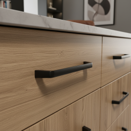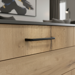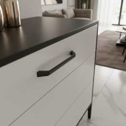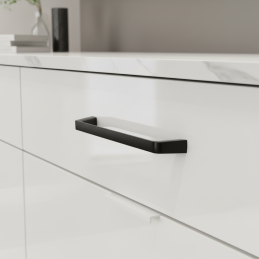 Úchytka SAMARA v čiernej matnej povrchovej úprave je moderným a univerzálnym doplnkom, ktorý dodá nábytku čistý, elegantný a nadčasový vzhľad. Jej jemne zalomený tvar pôsobí subtilne, no zároveň výrazne, vďaka čomu sa skvele hodí do minimalistických, industriálnych aj moderných interiérov. Matná čierna farba vytvára sofistikovaný kontrast na svetlom aj tmavom nábytku a zvýrazňuje línie dvierok či zásuviek.