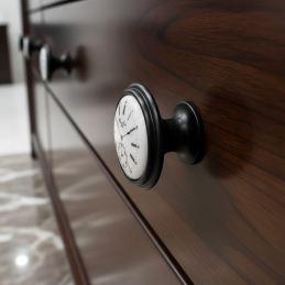Dizajnová úchytka CLOCK v čiernom prevedení je výnimočný doplnok, ktorý okamžite upúta pozornosť motívom elegantného hodinového ciferníka. Spojenie keramiky a kovu zabezpečuje nielen vizuálnu atraktivitu, ale aj vysokú odolnosť a kvalitu spracovania. Úchytka pochádza od renomovaného talianskeho výrobcu, čo zaručuje precízny dizajn aj dlhú životnosť.