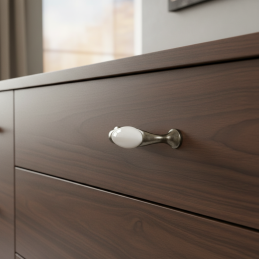 Vďaka ergonomickému tvaru sa úchytka pohodlne používa a jej nadčasový vzhľad je vhodný do kuchýň, jedální, komôd či rustikálnych interiérov. Porcelánový detail pôsobí elegantne a príjemne zjemňuje kovový základ.