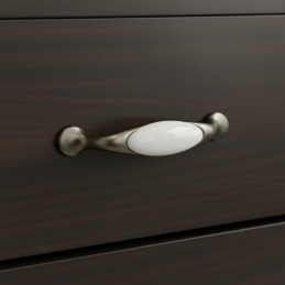 Úchytka GAUDIA predstavuje elegantné spojenie tradičného dizajnu a jemného dekoratívneho akcentu. Kombinácia starostrieborného kovu a porcelánovej vložky vo farbe vanilka dodáva nábytku výnimočný charakter – pôsobí romanticky, vintage a zároveň mimoriadne štýlovo.
