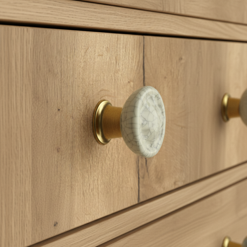 Dekoratívna porcelánová knopka WESTERN v luxusnom prevedení starozlatá + biely porcelán je skvelou voľbou pre klasické, vintage aj rustikálne interiéry. Spojenie elegantného porcelánu s teplým odtieňom starozlata pôsobí výrazne a dodáva nábytku noblesný charakter.