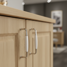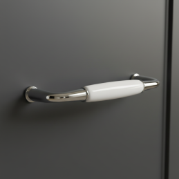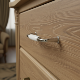 Úchytka BLANCA v kombinácii lesklého chrómu a bieleho porcelánu prináša elegantný, čistý a moderný vzhľad, ktorý zároveň zachováva jemný nádych retro štýlu. Lesklý chróm pôsobí luxusne a dokonale ladí s hladkým porcelánovým stredom.