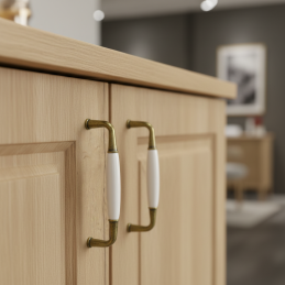 Elegantná rustikálna úchytka BLANCA je ideálnou voľbou pre všetkých, ktorí hľadajú detail s nádychom retra a tradičného dizajnu. Vďaka kombinácii staromosadze a bieleho porcelánu pôsobí nadčasovo a je obľúbenou voľbou pri rekonštrukcii či výmene úchytiek na staršom nábytku. Skvele doplní kuchynský, vidiecky, provensálsky aj klasický štýl interiéru.