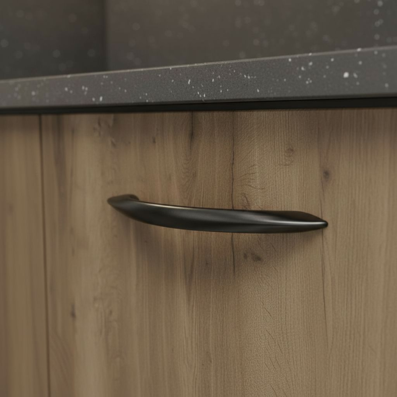 Úchytka KINGSTON v elegantnom čiernom matnom prevedení ponúka čistý, moderný dizajn a nadčasový oblúkový tvar. Je vhodná pre kuchynský, kúpeľňový aj obytný nábytok a vďaka dômyselne tvarovanému oblúku poskytuje pohodlné a ergonomické uchopenie. Matná čierna povrchová úprava podčiarkuje jej moderný charakter a dodá nábytku výrazný, štýlový akcent.