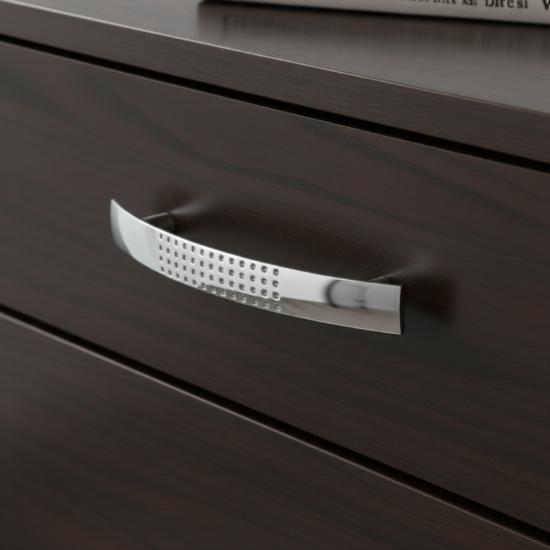 Úchytka VELLEN v lesklom chrómovom prevedení je ideálnou voľbou pre všetkých, ktorí chcú svojmu nábytku dodať moderný, čistý a žiarivý vzhľad. Jemne prehnutý tvar doplnený o dekoratívnu štruktúru drobných bodiek vytvára efektný dizajnový detail, ktorý vynikne v kuchyniach, kúpeľniach aj obývacích priestoroch.