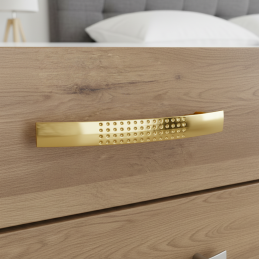 Elegantná úchytka TYLLAU v zlatom lesklom prevedení je výrazným dizajnovým prvkom, ktorý okamžite dodá nábytku luxusný a moderný vzhľad. Lesklý zlatý povrch pôsobí exkluzívne, pričom dekoratívne kovové bodky na úchytke jej dodávajú jedinečný šmrnc.Je vhodná do moderných interiérov, klasických kuchýň aj reprezentatívnych priestorov, kde sa kladie dôraz na...