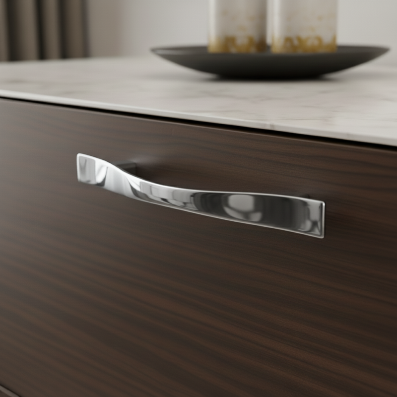 Úchytka WIX v lesklom chrómovom prevedení je ideálnym doplnkom pre interiéry, ktoré kladú dôraz na moderný, čistý a nadčasový vzhľad. Jej jemne prehnutý tvar pôsobí harmonicky a elegantne, zatiaľ čo vysoký chrómový lesk dodáva nábytku svieži a žiarivý efekt.