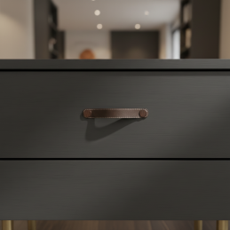 Elegantná kožená úchytka CASE v hnedom prevedení je ideálnou voľbou pre tých, ktorí hľadajú kombináciu prírodného materiálu, moderného dizajnu a vysokého komfortu používania. Pravá koža s kontrastným šitím pôsobí teplo, luxusne a dodá nábytku jedinečný charakter. Kovové krytky v bronzovom tóne dotvárajú jej exkluzívny vzhľad.