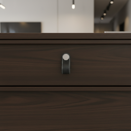 Elegantná kožená knopka CASE je ideálnou voľbou pre moderný aj klasický interiér. Kombinuje pravú kožu s kovovým prvkom a dekoratívnym prešívaním, ktoré dodáva úchytke remeselný charakter a vysokú odolnosť. Vytvára mäkký, príjemný úchop a zároveň pôsobí esteticky a nadčasovo.