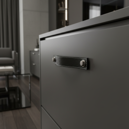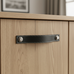 Elegantná kožená úchytka SAMSONITE je štýlovým doplnkom vhodným pre moderný aj industriálne ladený nábytok. Vyznačuje sa masívnym vzhľadom, kvalitným prešitím a kovovými skrutkami, ktoré dodávajú úchytke výrazný charakter.