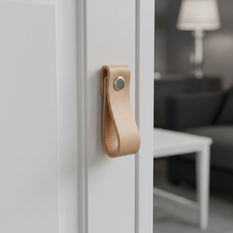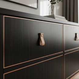 Elegantná kožená úchytka DOLCE Mini z prírodnej kože je štýlový doplnok pre moderný aj klasický nábytok. Mäkký kožený pásik pôsobí minimalisticky, je príjemný na dotyk a vytvára prirodzený teplý akcent v interiéri. Vďaka svojmu tvaru je ideálna pre zásuvky, dvierka či menší nábytok.