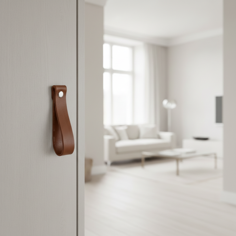 Kožená úchytka DOLCE Maxi v hnedom prevedení prináša do interiéru teplý prírodný akcent a dizajnovú jemnosť. Vďaka väčšej dĺžke pôsobí výraznejšie než verzia Mini a je vhodná na skrinky, komody, šuplíky či doplnkový nábytok. Mäkká pravá koža dodáva nábytku jedinečný charakter a príjemný dotyk.