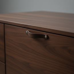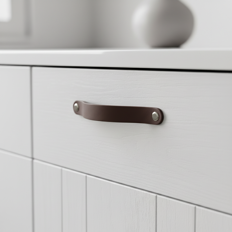 Exkluzívna úchytka z pravej kože v elegantnom tmavohnedom prevedení, doplnená o matnú hliníkovú koncovku. Pôsobí luxusne, nadčasovo a dodá nábytku hrejivý dizajnový detail. Vďaka flexibilite kože je úchytka pohodlná na používanie a zároveň veľmi univerzálna.