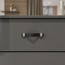 Moderná kožená úchytka DALLAS v kombinácii čiernej kože a elegantných hliníkových koncoviek pôsobí mimoriadne štýlovo a univerzálne. Vďaka jemnému ergonomickému prehnutiu sa príjemne uchopuje a stáva sa praktickým aj estetickým doplnkom nábytku.