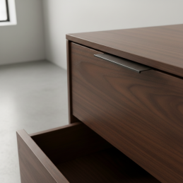 Elegantná minimalistická úchytka navrhnutá pre montáž na hornú hranu dvierok alebo zásuviek. V čiernom brúsenom prevedení pôsobí moderne, nadčasovo a dokonale zapadne do interiérov, kde dominuje čistý dizajn a rovné línie.