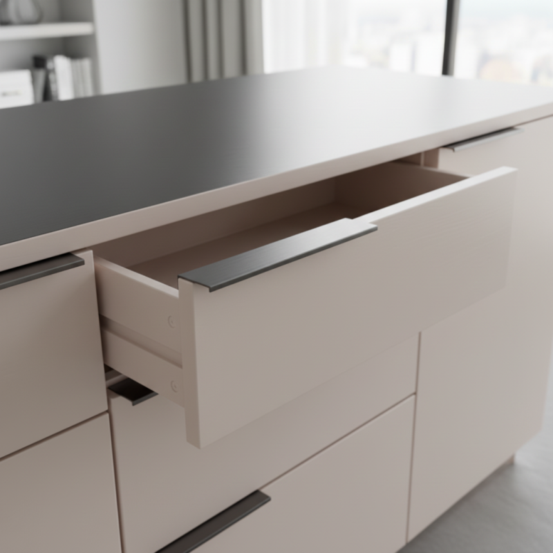 Úchytka má veľmi tenký profil, čo zabezpečuje komfortné používanie bez rušivého vizuálneho efektu na nábytku.