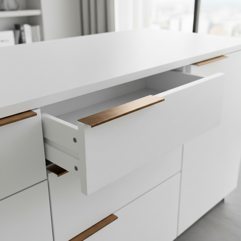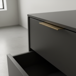 Moderná úchytka CANSAS v elegantnom prevedení mosadz brúsená je určená na montáž na hranu dvierok alebo zásuviek. Teplý mosadzný tón spojený s jemne brúseným povrchom dodáva nábytku luxusný a nadčasový vzhľad. Ideálna pre moderné, minimalistické aj retro ladené interiéry.