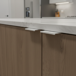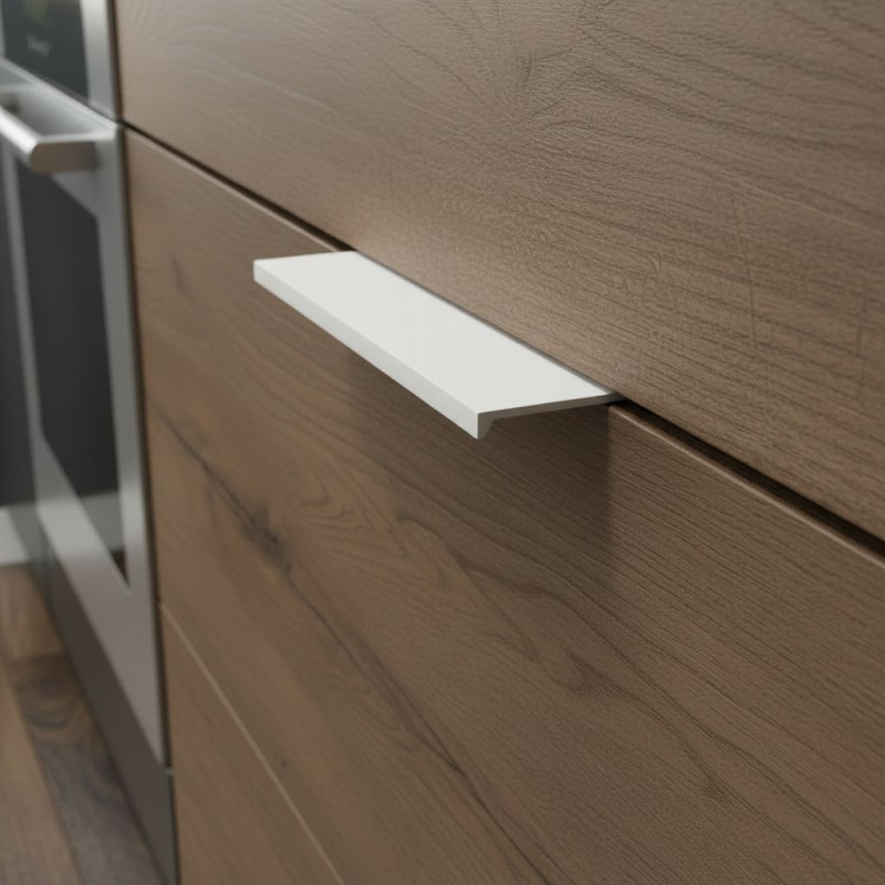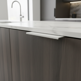 Úchytka RIOS v modernom prevedení biela matná je ideálnym riešením pre luxusné interiéry a dizajn.. Montuje sa priamo na hranu (hornú alebo bočnú), čím vytvára čistý, elegantný a veľmi praktický vzhľad.