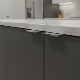 Je vyrobená z kvalitného kovu s odolnou matnou povrchovou úpravou, ktorá je príjemná na dotyk a zároveň odoláva poškriabaniu. Tenký, nenápadný profil pôsobí moderne a dokonale zapadne do kuchyne, kúpeľňového nábytku či obývacích zostáv.