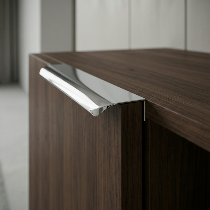 Elegantná úchytka na hranu dvierok AVANTI v prevedení lesklý chróm je ideálnym riešením pre moderné aj nadčasové interiéry. Montuje sa na hornú hranu dvierok alebo zásuviek, čím zachováva čistý vzhľad čelnej plochy nábytku a podčiarkuje jeho minimalistický charakter.