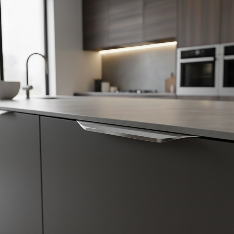 Dizajnová úchytka na hranu dvierok s montážou zo zadnej strany dvierok dostupná v 11 rozmeroch. Roztečou dier na výber sa rozumie celková dĺžka úchytky.