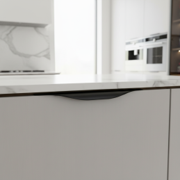 Elegantná zafrézovacia úchytka LUTRA v prevedení čierna matná je moderným a praktickým riešením pre všetky typy nábytku. Osádza sa priamo do hrany dvierok alebo zásuviek, čím vytvára minimalistický a čistý vzhľad bez vyčnievajúcich prvkov. Úchytka je vyrobená z kvalitného hliníka a má jemne brúsený povrch.