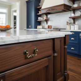 Úchytka MATILDA v povrchovej úprave staromosadz je nádherným doplnkom pre klasický, vintage alebo vidiecky štýl nábytku. Jej tvar vychádza z tradičných historických úchytov – s prepracovanými krivkami, jemnými detailmi a charakteristickým závesným prevedením.