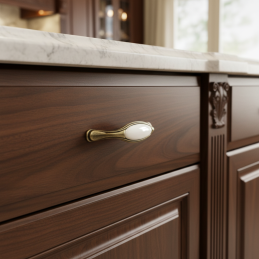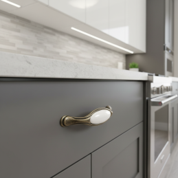 Úchytka RITA v povrchovej úprave starozlatá je nadčasovým dekoratívnym prvkom, ktorý skvelo doplní klasické, vidiecke aj romantické interiéry. Jej tvar sa nesie v jemne historizujúcom štýle a stredová časť z lesklého bieleho porcelánu dodáva úchytke luxusný a čistý vzhľad.